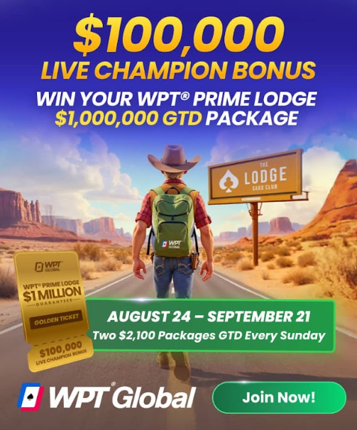 WPT Global is giving you the chance to win your way to the WPT® Prime Lodge Championship and play for the massive $1Million Guarantee AND a $100,000 bonus.