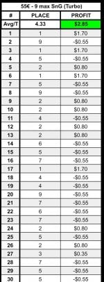 So I decided to start sticking with the $0.55 9max SnG and record my results. I started out really hot, but the later half kicked my butt big time, with many ridiculous beats. Still came out of the day positive (barely). 30 games in the day and I'm up, even after losing 9 of 10 buy ins in my worst streak. Any tips on how to improve going into day 2?